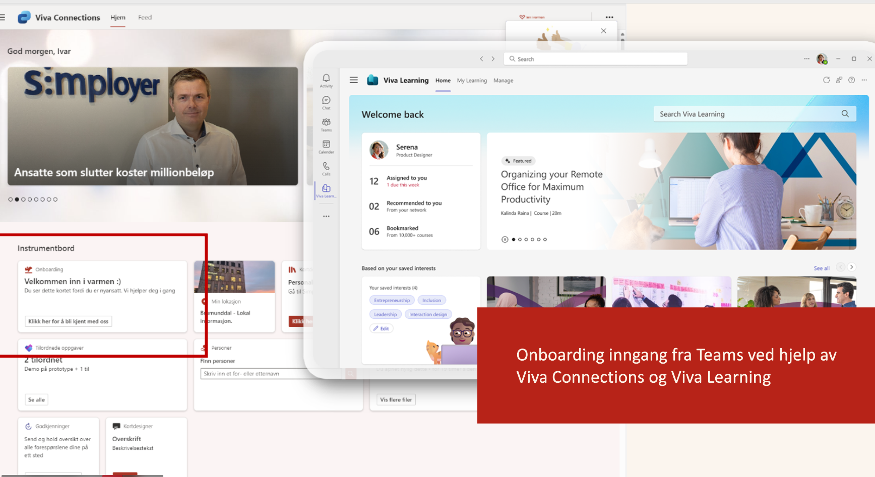 Onboarding inngang fra Teams: Viva Connections og Viva Learning integrerer onboarding direkte i Teams.