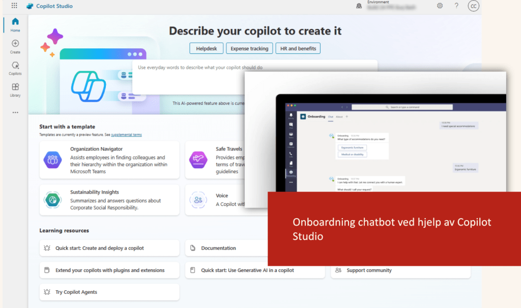 Onboarding chatbot: Ved hjelp av Copilot Studio kan en chatbot bistå nye ansatte med spørsmål og oppgaver.